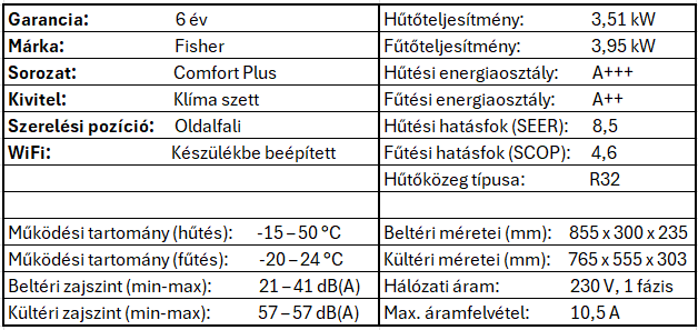 Fisher Comfort Plus FSAIF-CP-121AE3 – Megbízható komfort egész évben