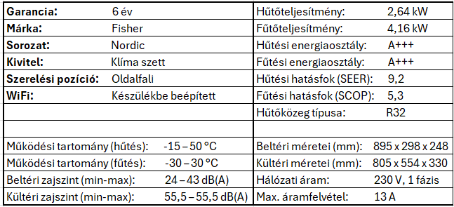 Fisher Nordic FSAIF-NORD-93AE3 / FSOAIF-NORD-93AE3 – Energiatakarékos klíma a mindennapokra