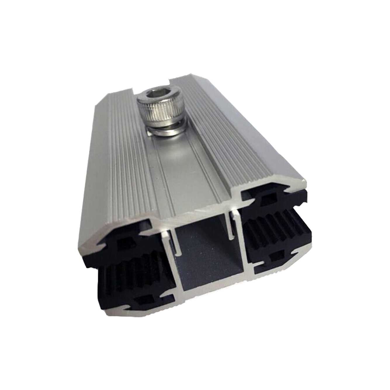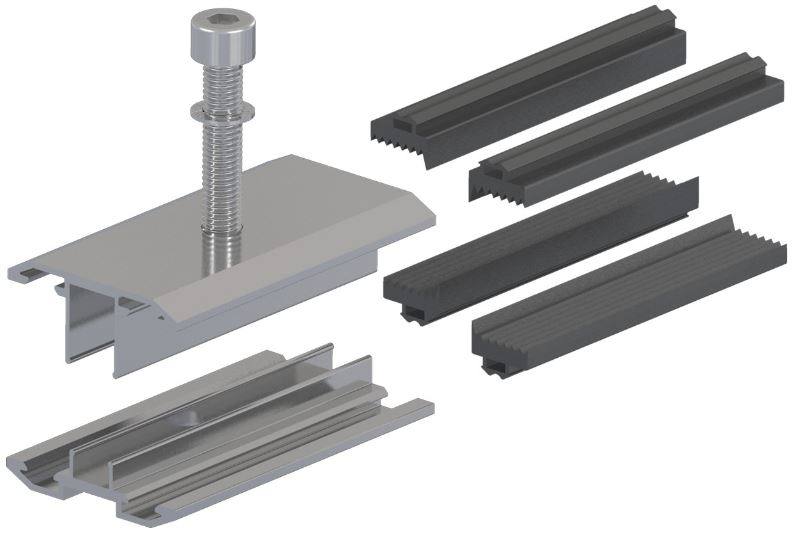 Ez az alumínium napelem leszorító könnyen telepíthető, kiemelkedő magas szilárdságú, vonzó megjelenéssel és jó korrózióállósággal rendelkezik. A belső rétegben elhelyezett EPDM gumipárna óvja a napelem paneleket. Az UV-álló EPDM gumicsík biztosítja az érzékeny, keret nélküli napelem panelek optimális és erős rögzítését.