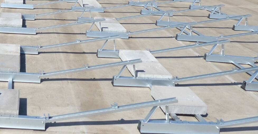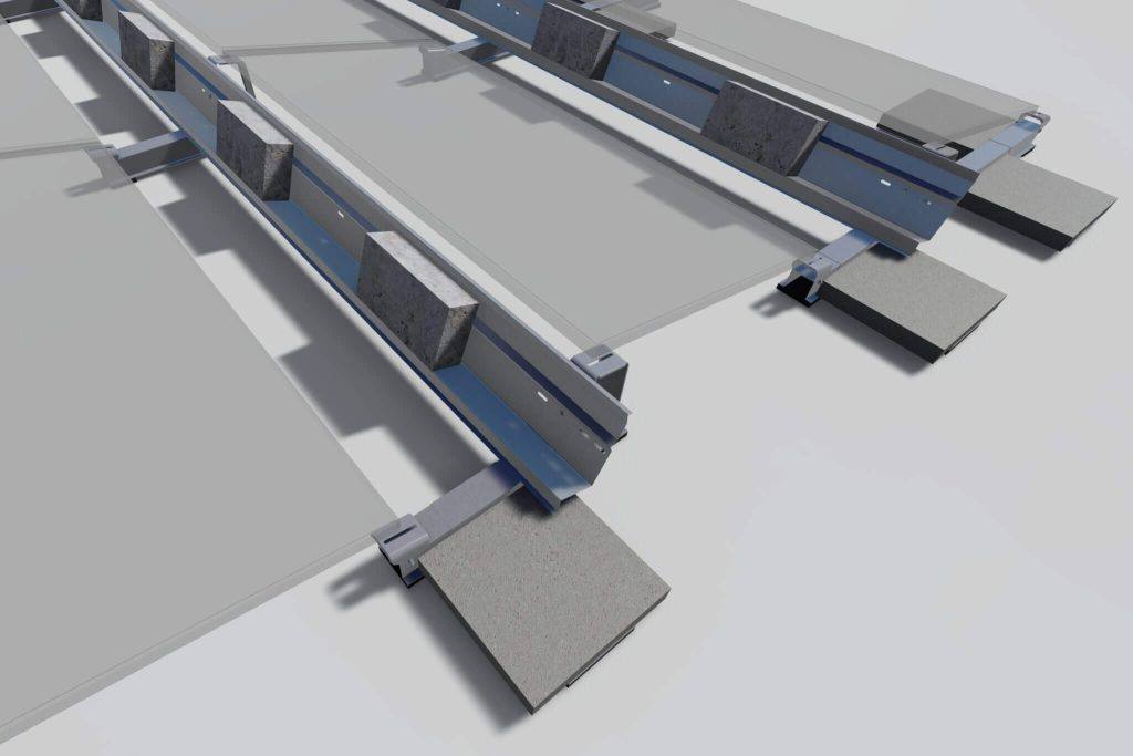 A lapostetős napelem-tartószerkezet stabilitásáról 40×40 cm-es járdalapok gondoskodnak, a ballasztozás ezekre a beton lapokra lett optimalizálva. A stabilitásról a 4, 6 és 10cm vastag járdalapok, valamint a fix súlytartó és integrált szélterelő elemek gondoskodnak.