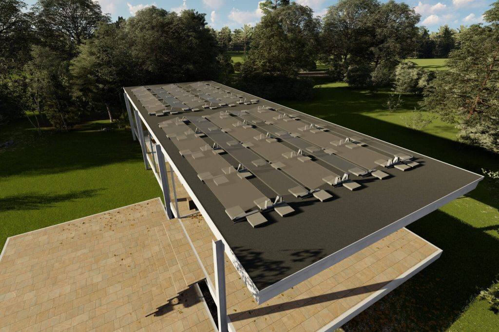 A lapostetős tartószerkezet felhelyezhető déli, illetve kelet-nyugati irányba is, ugyanazokat a szerkezeti elemeket használva. A dőlésszög fix, 10°-os. Mindkét változat lehetőséget ad a napelem panelek többféle elrendezésére.
