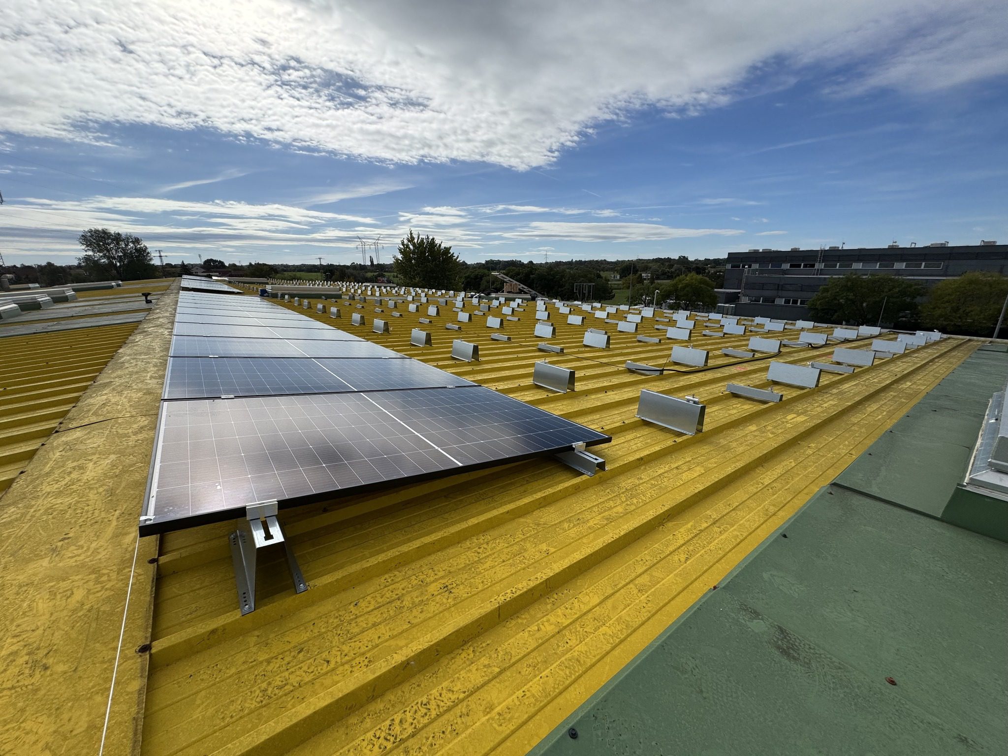 A kiemelő lábak nemcsak különböző magasságúak, hanem a felső síkjuk is enyhén döntött kialakítást kapott. Ennek köszönhetően a sín és a napelemkeret teljes felületen, stabilan tud ráfeküdni, így a rendszer nem pontszerűen, hanem egyenletes felülettel támaszkodik. Ez növeli a tartósságot, csökkenti a terhelési pontokat, és biztosítja, hogy a napelem a gyárilag tervezett 6°-os dőlésszögben, torzulás nélkül kerüljön rögzítésre.